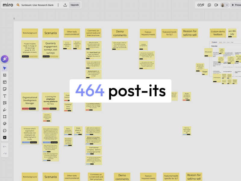 I sat in on more than 30 product demos and sales calls to get first-hand information about the challenges they faced, and what they would be looking for in such a tool, which helped me to immerse myself in the mindset of our target users.